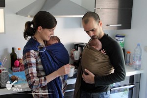Il peut être intéressant de maîtriser le portage double, c’est à dire les deux bébés en même temps. Les différents types d’écharpes et de porte-