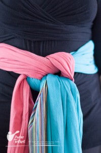 C’est un noeud qui permet de resserrer ou desserrer le tissu et les ourlets alors que bébé est dans l’écharpe. On l’utilise souvent avec les nouages « hamac » ou avec un rebozo.